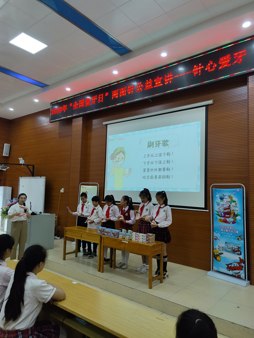公司市场部高级工程师方堃向同学们介绍了“全国爱牙日”的由来,帮助大家树立爱牙护龈的口腔健康理念。