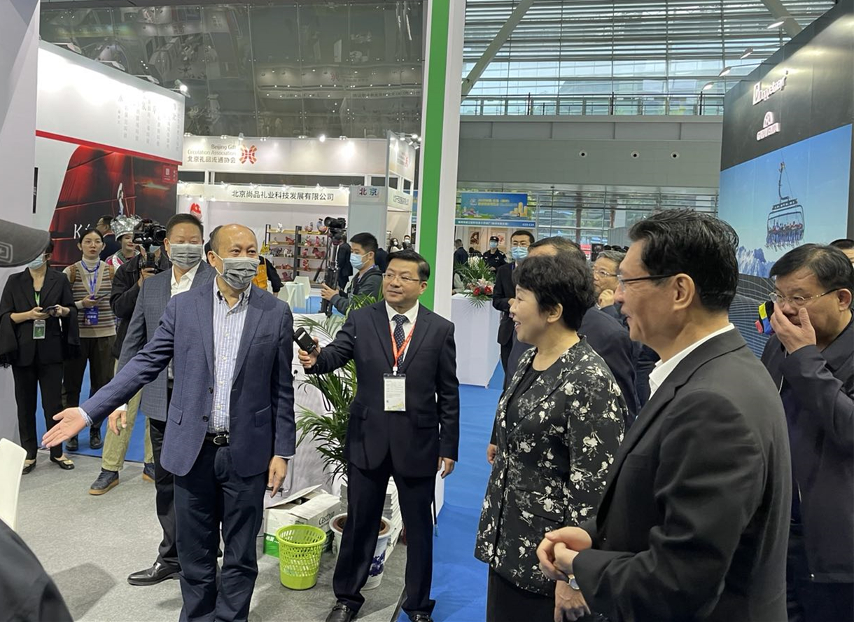 ca88唯一公司党委书记、董事长林钻煌(左三),党委副书记、总裁吴堃(左二)亲临展位为宣传ca88唯一品牌产品站台。