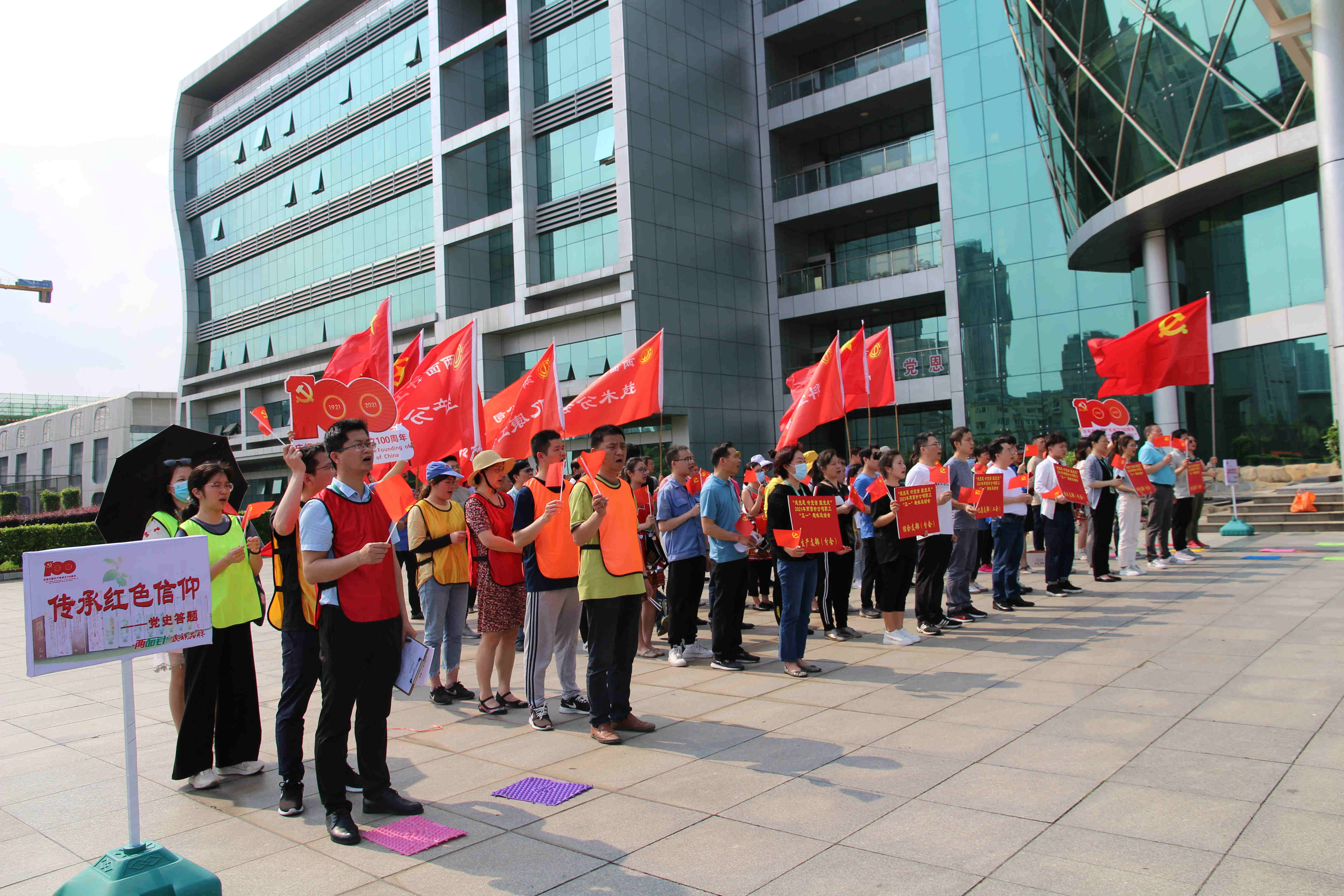活动在激昂的大合唱《没有共产党就没有新中国》中拉开帷幕,ca88唯一全体干部职工手举五星红旗和党旗,激情高亢,唱出了对党对祖国的热爱,整齐嘹亮的歌声响彻在公司上空。
