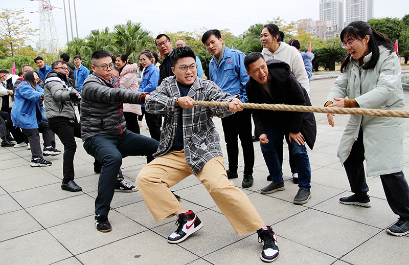 与此同时,民族团结拔河比赛也在激烈进行中,公司各工会分会组队到场,队员们咬紧牙关,使出洪荒之力,场上场下各民族员工互动交融,紧密团结,高亢的加油声一浪接一浪。最终,亿康公司工会夺得冠军,生产分会获得亚军,营销分会和技术分会获得季军。