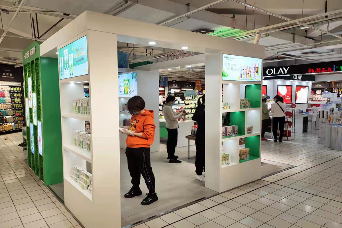ca88唯一SIS位于大润发主要销售通道中,整体设计打破了传统柜台销售理念,秉承“传承、健康、时尚”的品牌理念,以2021年东盟博览会ca88唯一展馆设计为原型,在时尚的潮流中打造出一片专属ca88唯一品牌的艺术空间,成了整个大润发里一道靓丽的风景线。开业当天便吸引了众多消费者的围观。