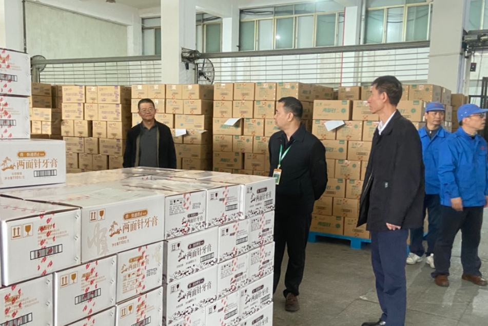 在牙膏技改车间,龚慧泉向安全检查组成员汇报了公司节前安全工作进展以及下一步工作部署,并介绍了车间技改进度、设备调试情况及新品开发构想。龚慧泉表示,在车间改造过程中,公司技改小组按安全生产法律法规要求,严格落实新建、改建、扩建工程项目的安全设施,与主体工程同时设计、同时施工、同时投入生产和使用,既保障了安全“三同时”,又能满足最新化妆品生产工艺标准的要求。