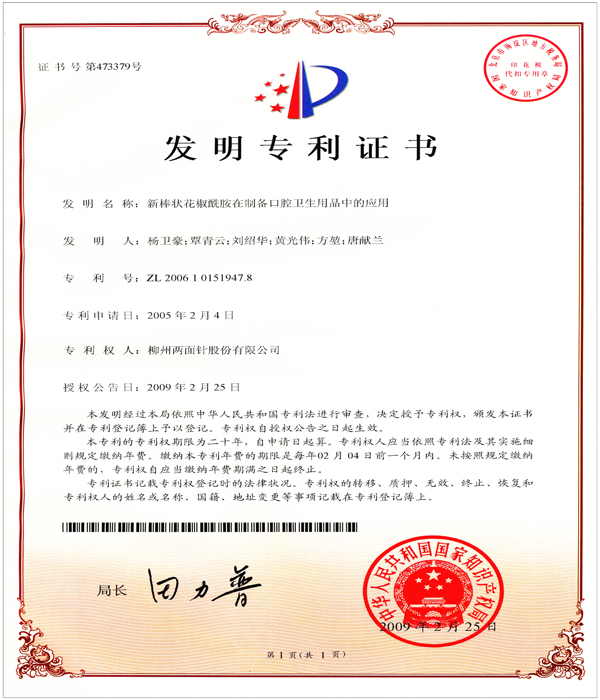 新棒状花椒酰胺在制备口腔卫生用品中的应用