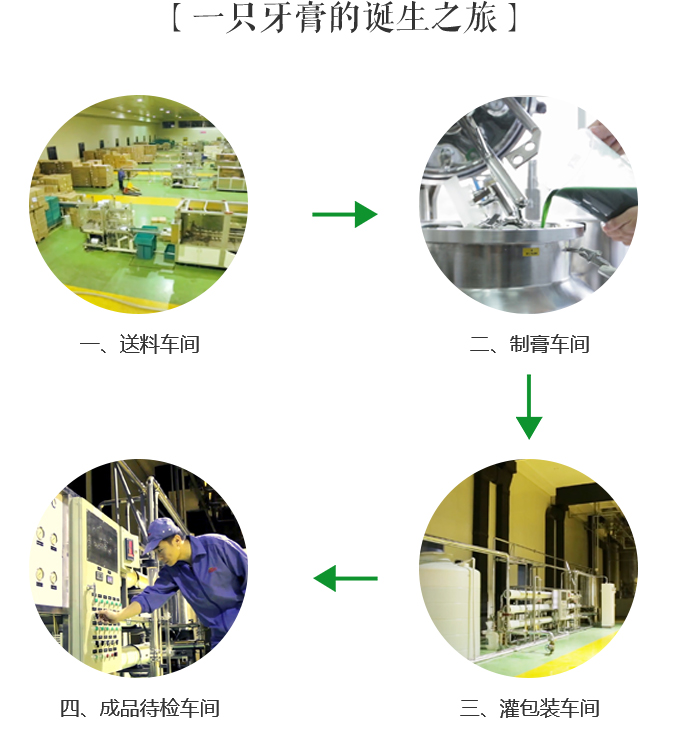 牙膏车间为30万洁净级车间,拥有3套德国佛科玛5200全自动控制制膏系统和4台1300制膏机,8条全自动灌包装线,日制膏能力达60吨以上,日灌装能力超50万支。牙膏生产通过ISO22716体系、GMPC体系等质量认证,并通过美国FDA现场审核,可合法生产出口美国的牙膏。