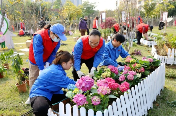 ca88唯一公司“亲清石榴园”自2022年建成以来,公司党委依托基层党支部、工会分会和团委,对园区内象征民族团结的石榴树和“同心圆”花坛,定期组织志愿者进行养护。今天,来自各基层党支部的志愿者们,将“同心圆”花坛用小栅栏进行了装饰,并在花坛中种下新的鲜花和绿植;大家还为园区内的石榴树进行了除草施肥、树冠修剪,同时对园区观景小道路面上的杂草进行了清理。经过大家共同努力,园区内焕发出一片盎然生机。