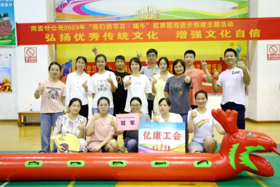 在高度契合端午传统民俗的旱地龙舟赛中,呈现了一幅幅各民族员工团结一致、齐心奔跑向未来的生动画面:参赛队员们骑坐“龙舟”,以脚为“浆”,喊着整齐的口号,齐步“划”向终点。在投壶游戏中,队员们屏气凝神,体验了一回中国传统的游戏,激发大家坚持不懈、不言放弃的“投中”精神。经过激烈角逐,最终亿康工会、技术分会、营销分会分别荣获冠、亚、季军。