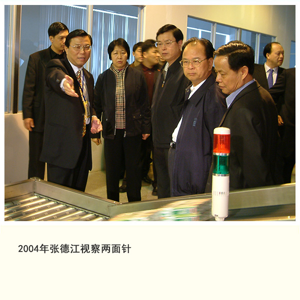 2004年,时任中共中央政治局委员、广东省委书记张德江在自治区党委书记曹伯纯、市委书记吴集成等同志的陪同下到公司视察。