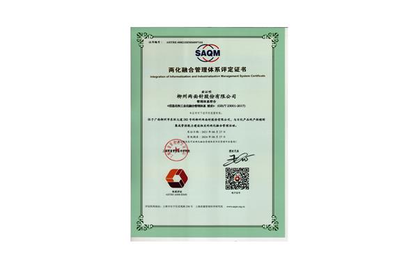 2021年,8月27日,公司喜获两化融合管理体系评定证书。