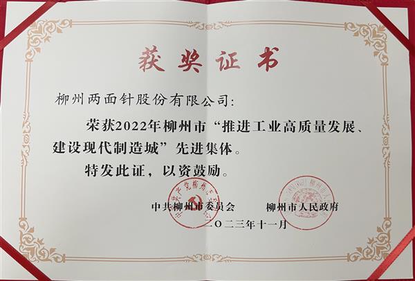 2023年,11月,ca88唯一公司获评2022年柳州市“推进工业高质量发展、建设现代制造城”先进集体。