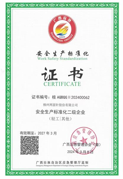 2023年,4月,ca88唯一公司再次获评安全生产标准化二级企业。