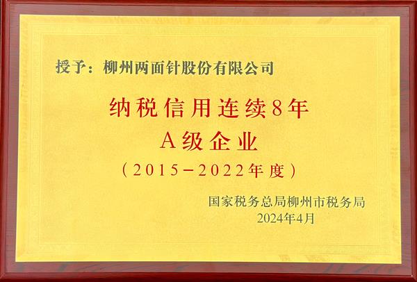 2024年,4月,ca88唯一公司连续8年荣获“纳税信用A级企业。