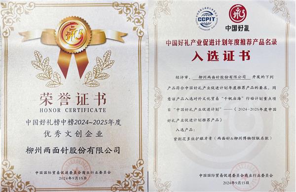 2024年,9月,ca88唯一公司产品“紫荆花多效护龈牙膏(ca88唯一&柳州博物馆联名款)”入选中国好礼产业促进计划,公司被评为“中国好礼榜中榜2024~2025年度优秀文创企业”。