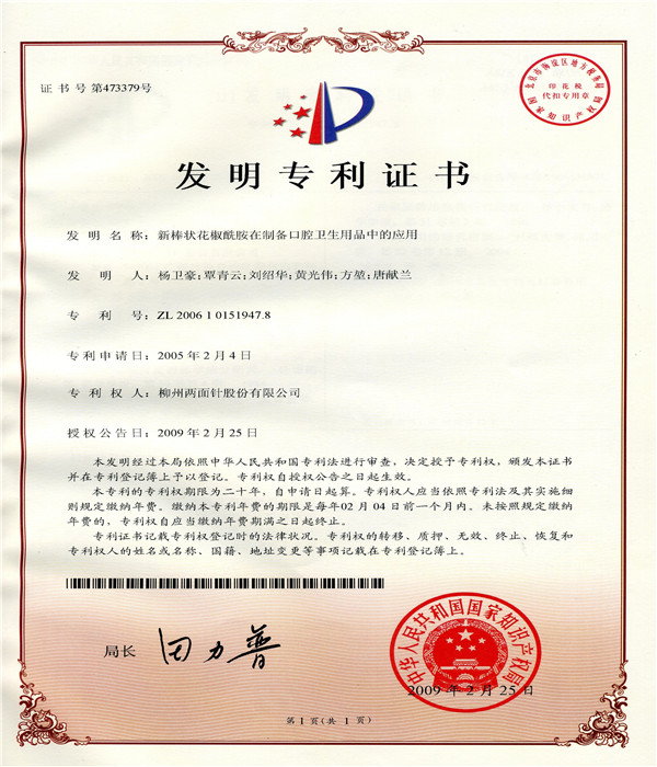 新棒状花椒酰胺在制备口腔卫生用品中的应用