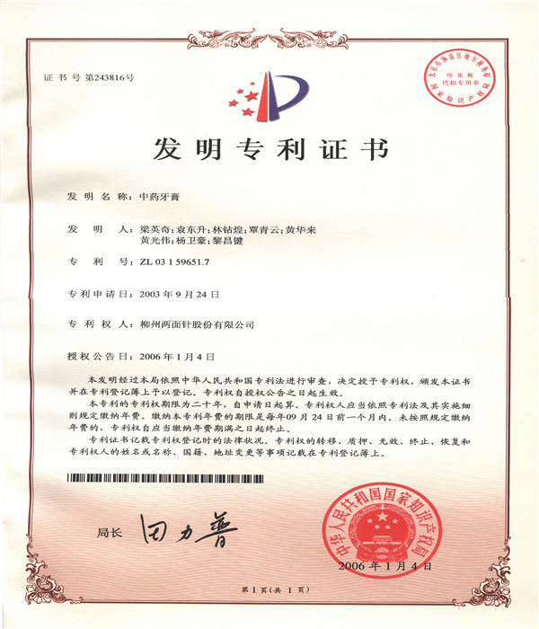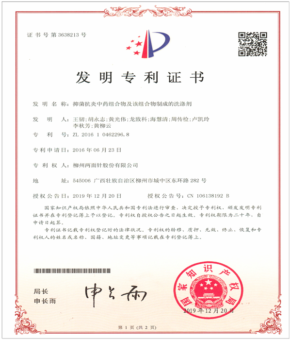 公司科研开发能力雄厚,拥有中国牙膏行业第一个博士后科研工作站,是 “全国口腔护理用品标准化技术委员会中草药牙膏分技术委员会”秘书处的承担单位、“国家第三批创新型试点企业”、“国家高新技术企业”,获批成立“自治区级技术中心”、“自治区级研发中心”,建有ca88唯一GAP研究基地,规模化规范化种植ca88唯一药材,保证药材质量。 技术中心现有独立完善、功能齐全的研发实验场所1500平方米,配备先进的高效气相色谱仪、高效液相色谱仪、原子吸收分光光度计、Frymakoruma Dinex Lab真空均质机等研发及分析仪器和设备,中心还分别设有:口腔产品研究室、洗化产品研究室、化学处理室、分析测试研究室、中药提取研究室、产品体验室、微生物实验室等多个细分工程实验场所,满足科研实验要求。 公司共有科研人员49人,中高级技术职称人员占42.9%,其中教授级高工2人,高级工程师8人,工程师、农艺师11人。拥有广西科学技术专家4人,柳州市科学技术专家5人;广西十百千人才工程第二层次人选 1人;柳州市“新世纪个十百人才工程”第二层次人才4人,第三层次人才8人;柳州市拔尖人才11人/次、优秀青年科技人才8人/次;中国轻工业联合会“大国工匠”1名;“广西杰出工程师”1名, 形成了一支涵盖精细化工、药物化学、口腔医学和香精香料等多学科的专业研发团队。 目前公司拥有有效专利61件,其中发明专利46件,实用新型专利2件,外观设计专利13件。