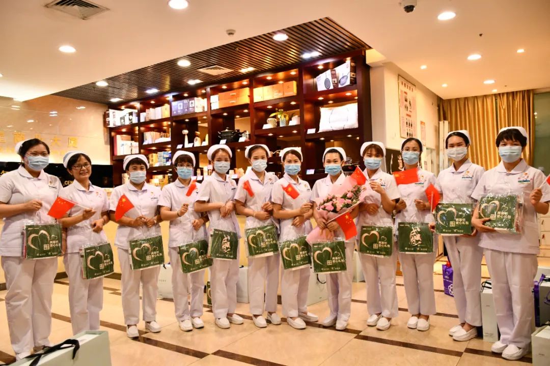 市总工会、市财贸工会、五星百货股份有限公司、ca88唯一公司向所有抗疫英雄赠送了感恩礼。