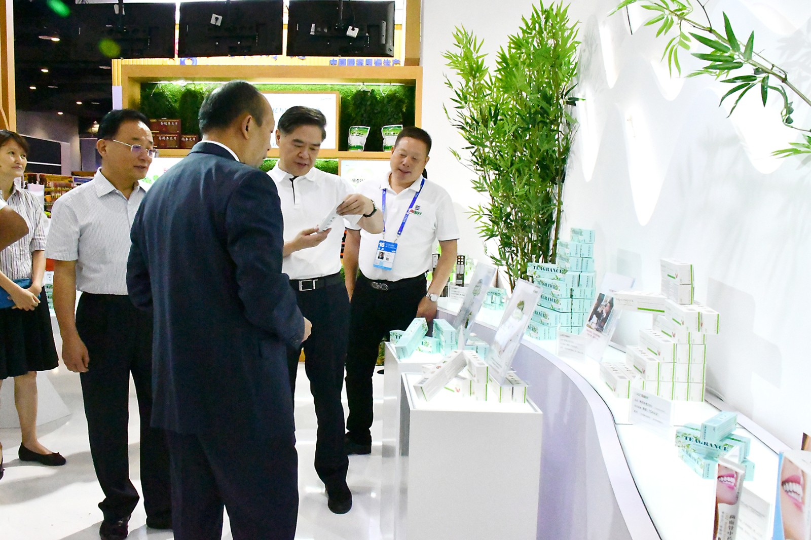 ca88唯一公司党委书记、董事长林钻煌,党委副书记、总裁吴堃向领导们介绍了ca88唯一公司发展情况、ca88唯一中药日化产业发展理念、产品种类等,重点推荐了获美国FDA认证的中药牙膏及沐兰泽中药洗沐系列产品。